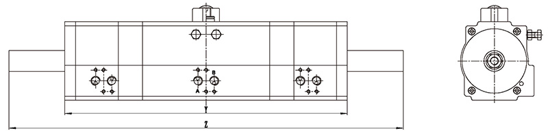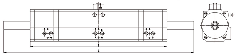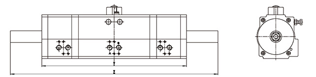 Three-position single-acting (spring return) pneumatic actuator of 180° can perform stroke operation in three positions within the range of 180°, respectively 0°, 90° and 180°, where 0° and 180° are pneumatic stroke operations and 90° are spring return stroke operation. As shown in the figure above: