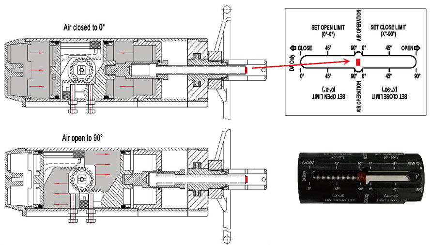 can perform the 0 - 90° full travel pneumatic operation as follow,
