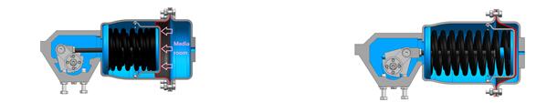 1, Large Torque Ranges The spring-diaphragm rotary actuator has a total of 6 size and the output torques range from 15 to 3000 Nm (133 to 26550 in·lbs) depending on the actuator size and available supply pressure. 2, Smooth Actuated, Long working life and Low-pressure drive The spring-diaphragm rotary actuators feature a rolling diaphragm design with a one piece diaphragm retainer and polyethylene bearing which helps to obtain longevity of the life cycle, exceptionally smooth actuation and low-pressure (1 bar) drive due to the low-friction and large-diameter diaphragm that is produced during operation.